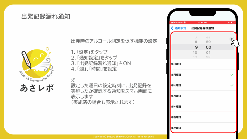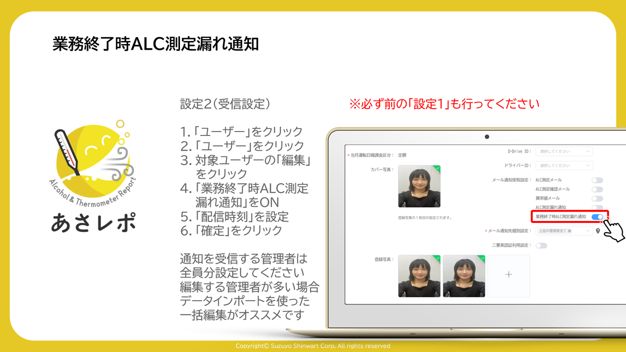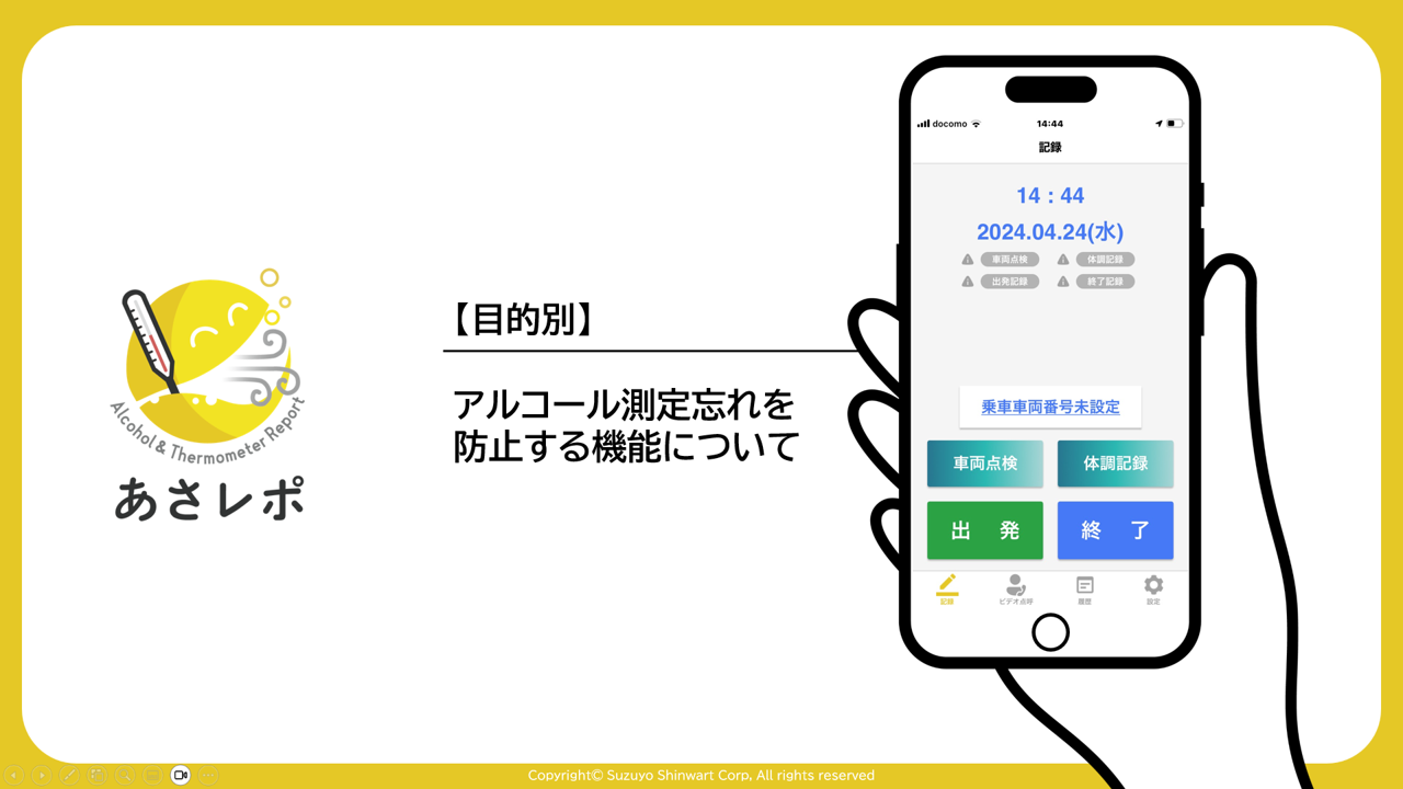 アルコール測定忘れを防止する機能をご紹介します