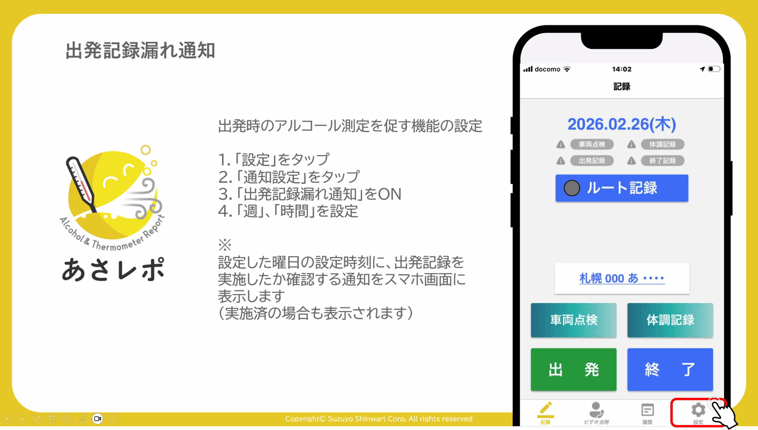 出発時のアルコール測定を促す機能の設定