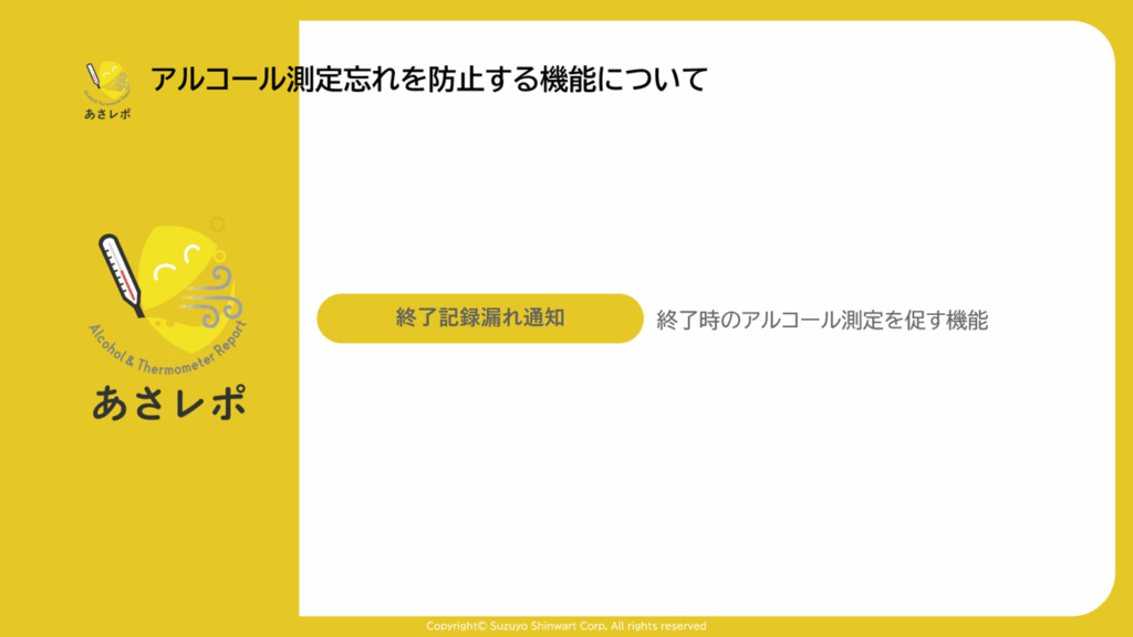 業務終了時ALC測定漏れ通知